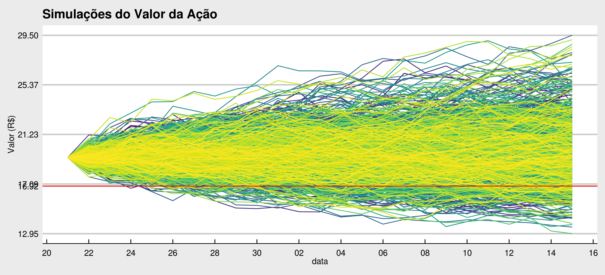 labs(title = "Simulações do Valor da Ação",