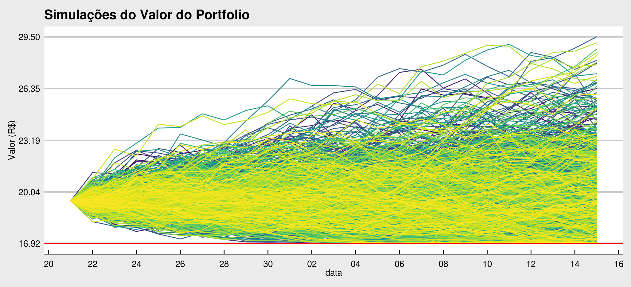 labs(title = "Simulações do Valor do Portfolio",